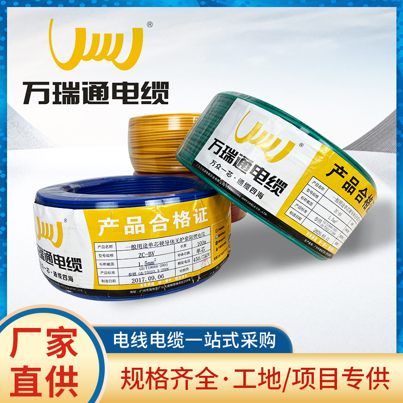 万瑞通电线ZR-BVR BV1.5 2.5 4平方国标阻燃铜芯多股家装照明软线